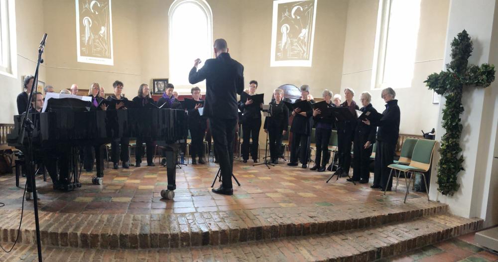Onder leiding van dirigent Pieter Bosma bracht het koor een afwisselend programma met unisono-zang, hymnen en koralen. Pianist Miguel Teuling zorgde voor de muzikale ondersteuning en nam ook solopartijen voor zijn rekening.