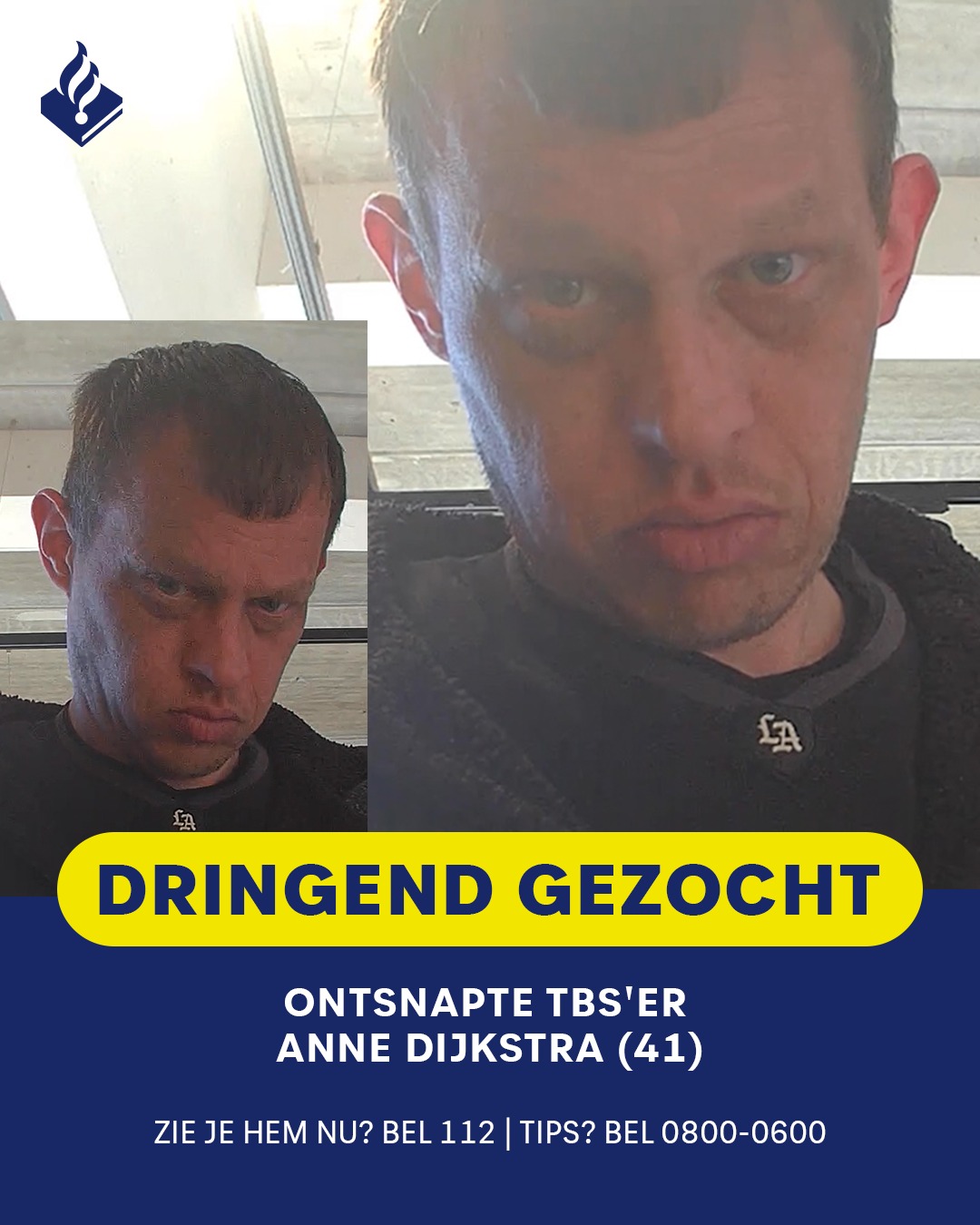 De politie is met spoed op zoek naar de 41-jarige Anne Dijkstra, die maandagochtend wist te ontsnappen tijdens begeleide werkzaamheden buiten een kliniek. De man, die in 2011 werd veroordeeld voor meerdere zedendelicten, is sindsdien spoorloos.