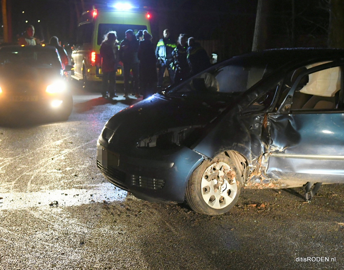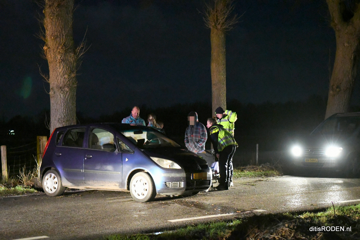 Een auto raakte door nog onbekende oorzaak uit de bocht, spinde en botste tegen een boom. Het voertuig kwam daarna weer op de weg tot stilstand.