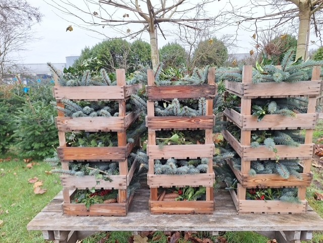 Tevens verkopen wij kleine bakjes met groen voor het maken van kerststukjes!
