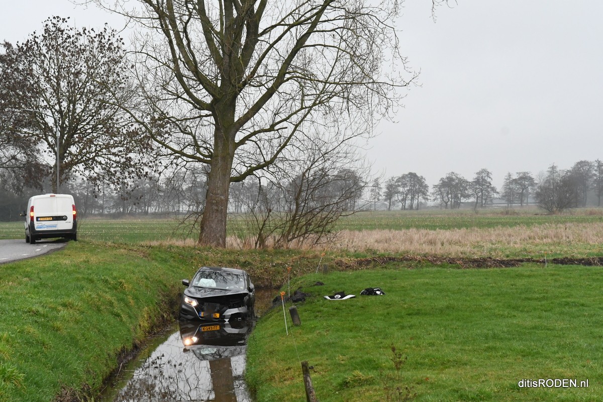 Auto belandt in sloot na ongeval op Mensumaweg in Tolbert