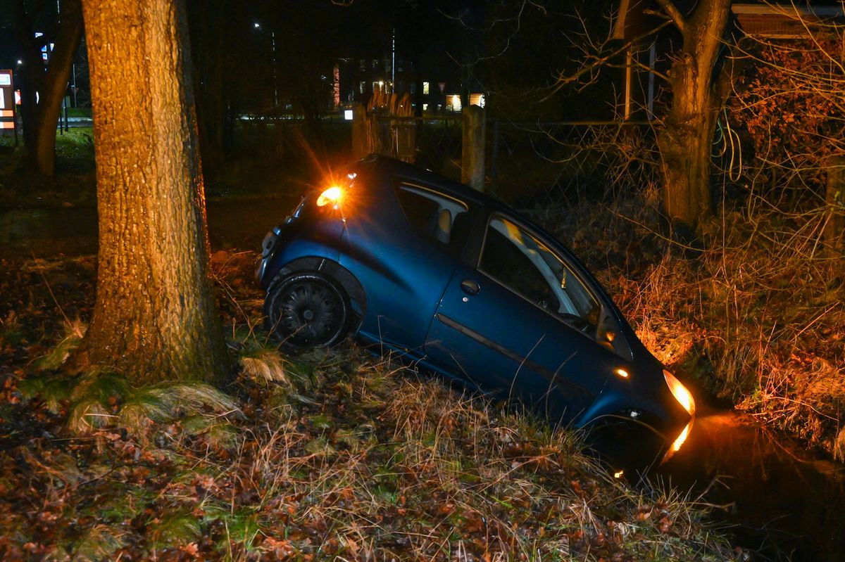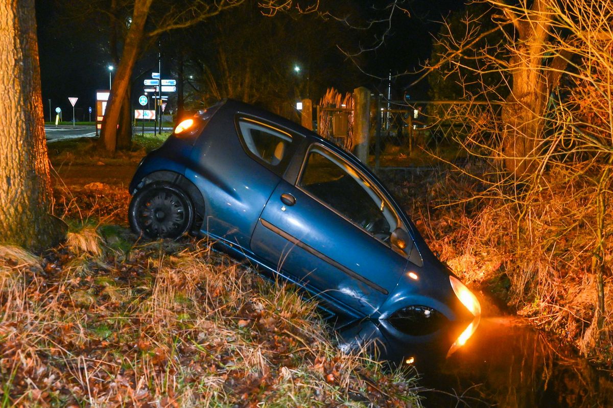 Auto belandt midden in de nacht in sloot langs Hoofdstraat in Midwolde