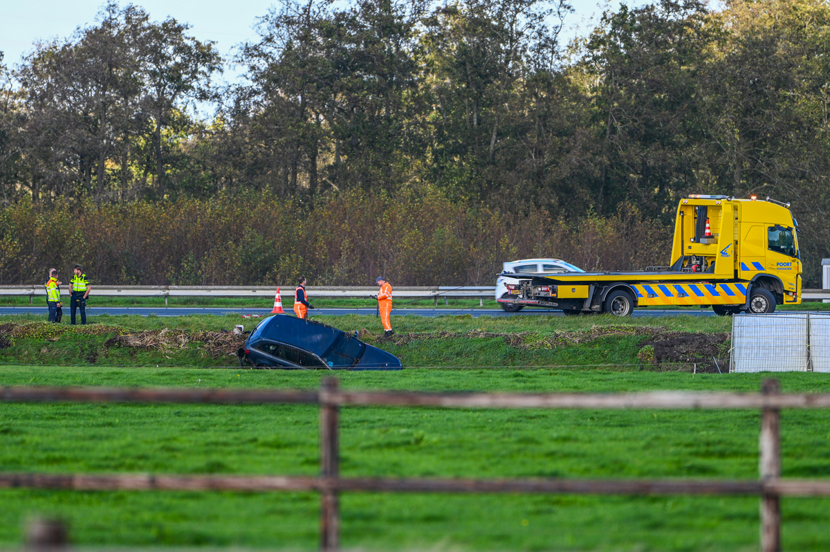 Auto op de kop in de sloot vanaf de A7 nabij Leek📸