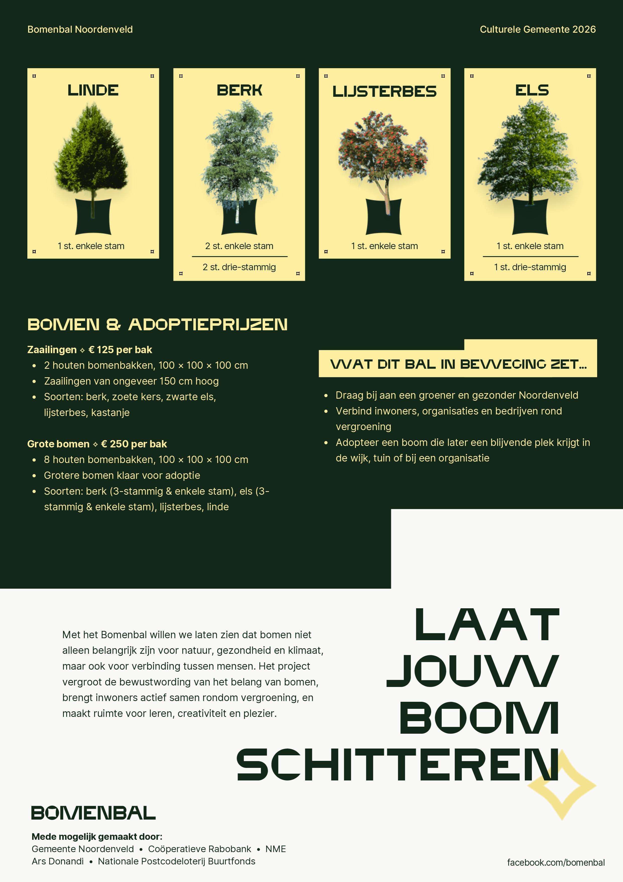 Meer informatie over het Bomenbal en de mogelijkheden voor adoptie is te vinden op facebook.com/bomen of stuur een mail aan anitavandernoord@gmail.com