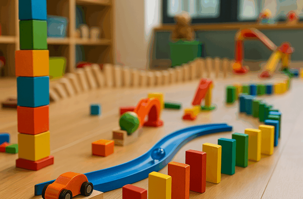 Dominoblokjes vallen om, daardoor rijdt een autootje weg en het rijdende autootje tikt een balletje aan, waardoor dat verder rolt…. Een voorbeeld van een kettingreactiebaan. Tijdens de Oktober Kindermaand kunnen kinderen van 7 tot 12 jaar in het Speelgoedmuseum Roden een kettingreactie bouwen. Technisch, creatief en leerzaam.