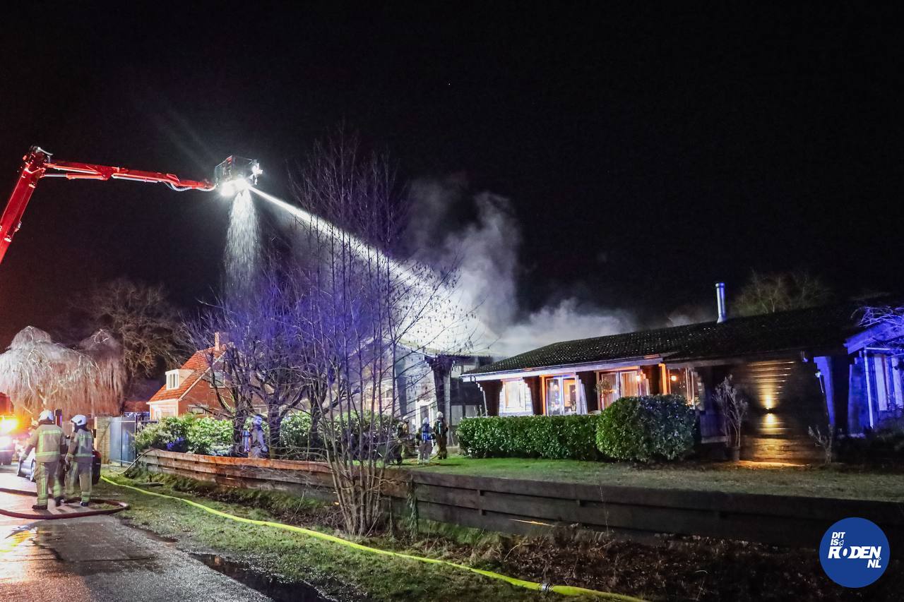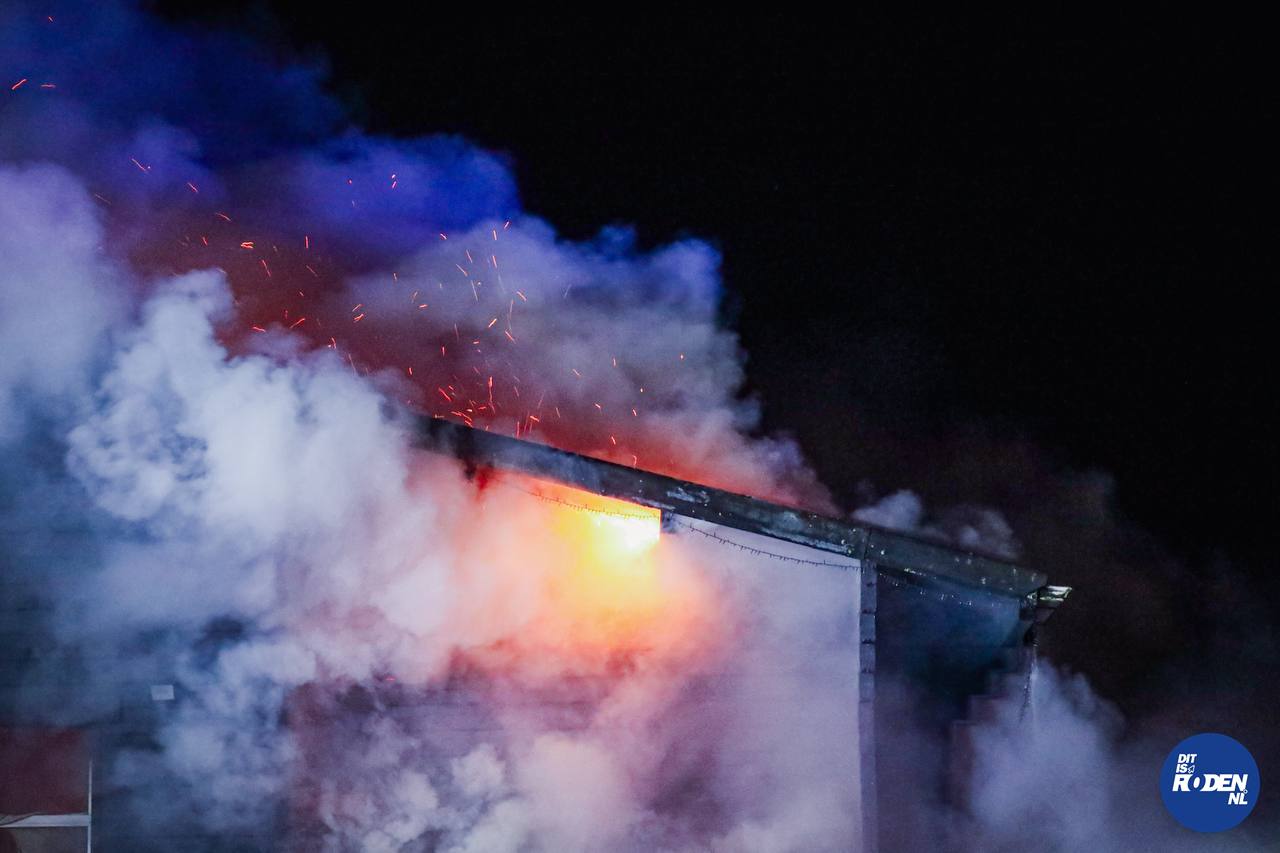 Volgens de brandweer gaat het om een uitslaande brand. De vlammen kwamen op een gegeven moment door het dak van het pand. De hulpdiensten schaalden op naar ‘grote brand’ waarop meerdere blusvoertuigen zijn ingezet om het vuur onder controle te krijgen.