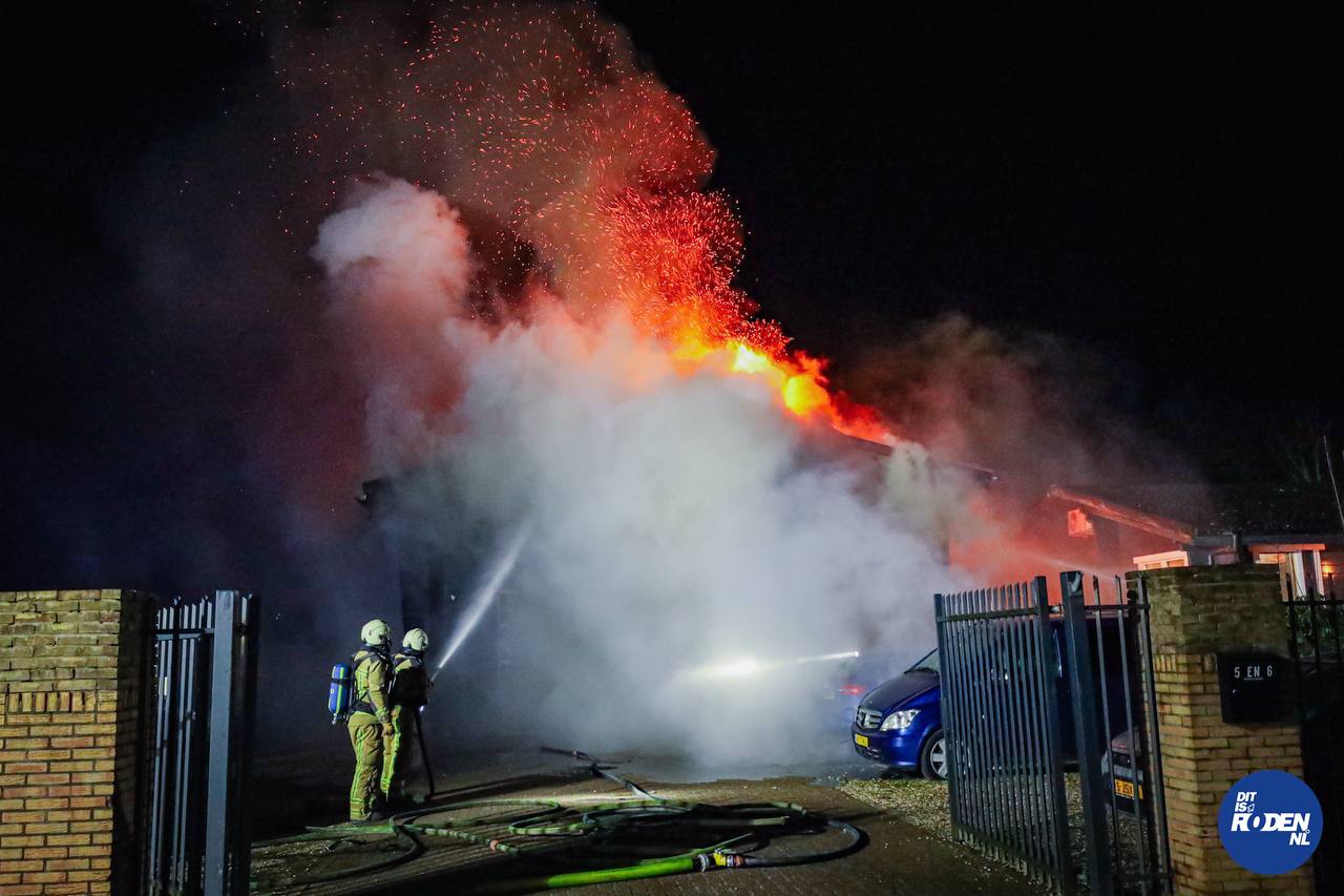 Aan de Vaart in Roden is afgelopen nacht een felle brand uitgebroken in een loods van een autobedrijf. Het vuur werd rond 02.30 uur ontdekt.