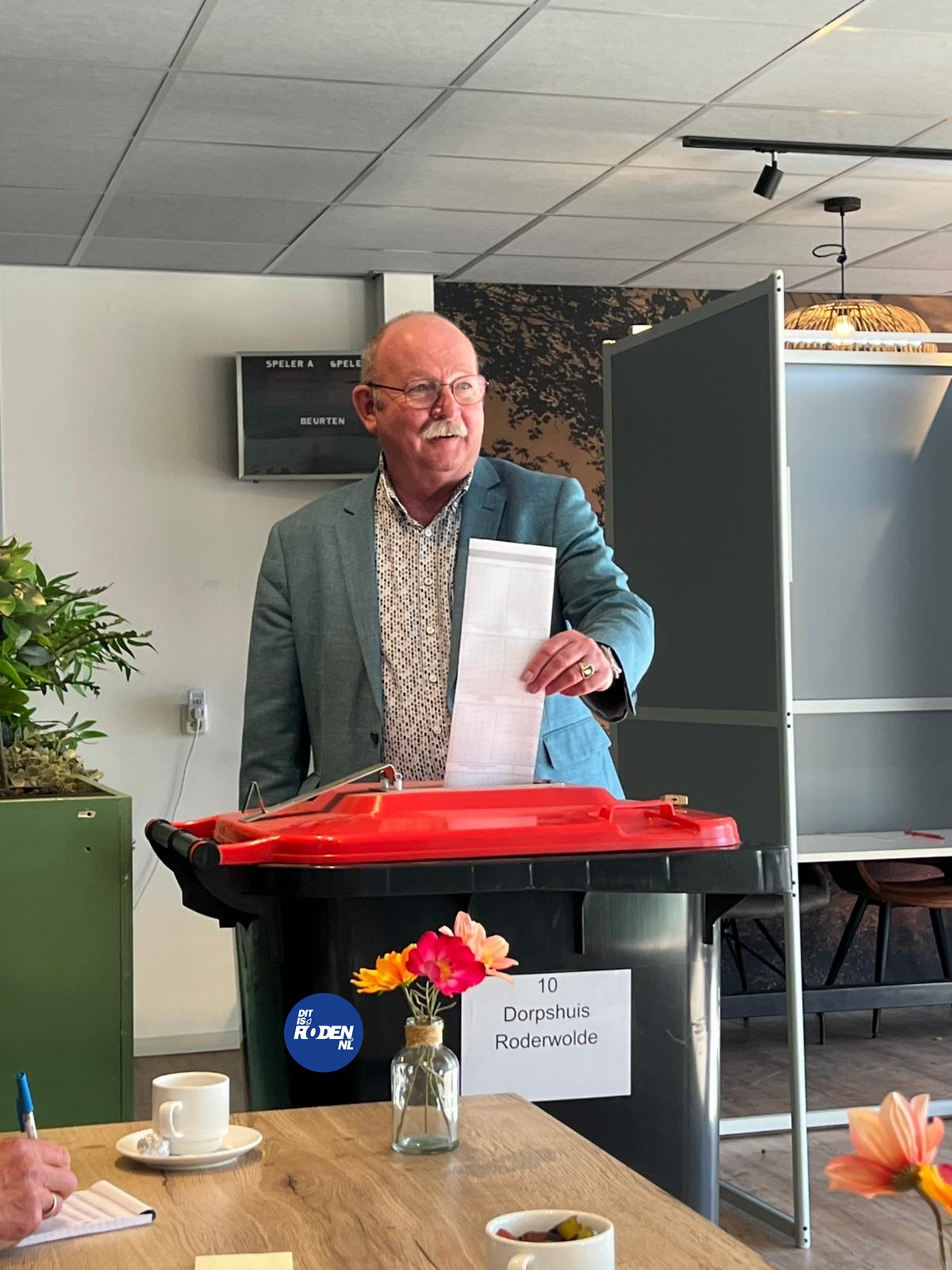 In Roderwolde schuift burgemeester Klaas Smid zijn stembiljet in de bus. Thuiswedstrijd. In het dorpshuis waar de ochtend zich al vroeg vult met voetstappen en korte begroetingen, loopt het gestaag door. Geen haast, wel ritme.