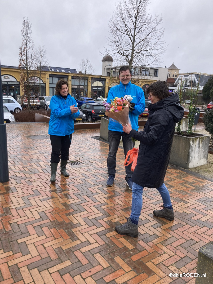 Het initiatief voor de opknap actie kwam van Anita van der Noord. Zij werd tijdens de werkzaamheden door de ChristenUnie verrast met een fleurig boeket bloemen als dank voor haar inzet. Anita: “Het is mooi om te zien dat we met elkaar iets doen voor het dorp. Zo maken we Roden niet alleen groener, maar ook gezelliger.”