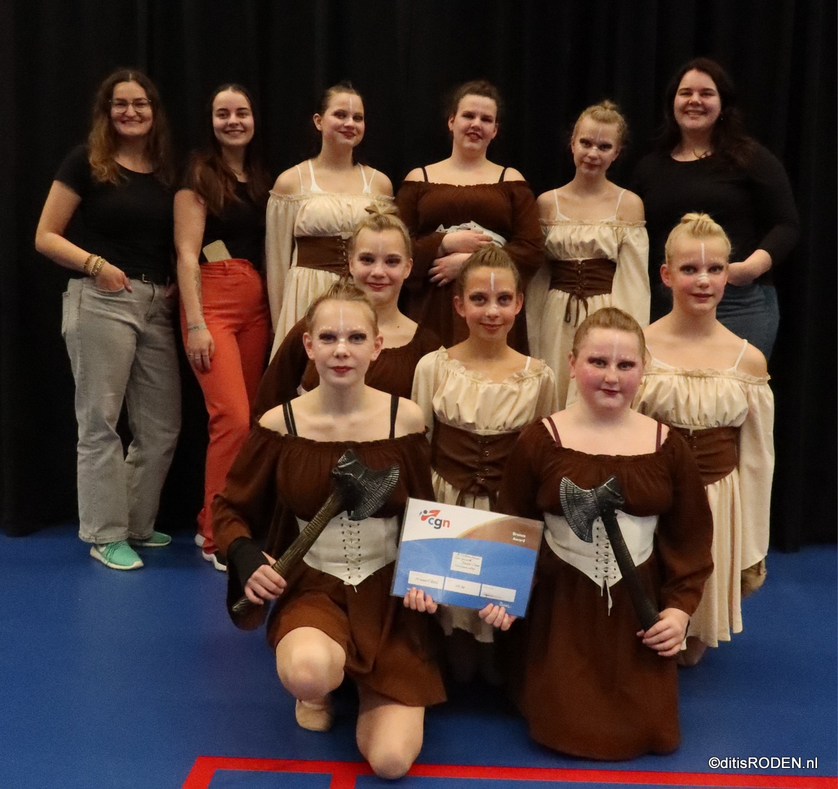 Jullie hebben ze vast wel eens zien lopen in het dorp, bij de Rodermarktparade of de Sinterklaasintocht: onze fantastische meiden van de colorguard N-Motion!