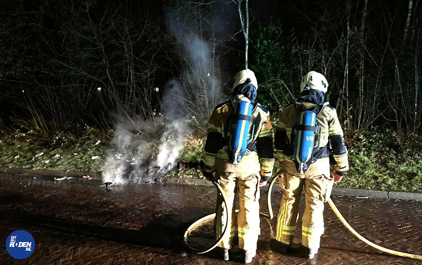 RODEN – De brandweer is vrijdagavond rond 23.40 uur met gepaste spoed uitgerukt voor een buitenbrand aan de Postemastraat in Roden. Ter plaatse bleek een papiercontainer langs de weg in brand te staan.