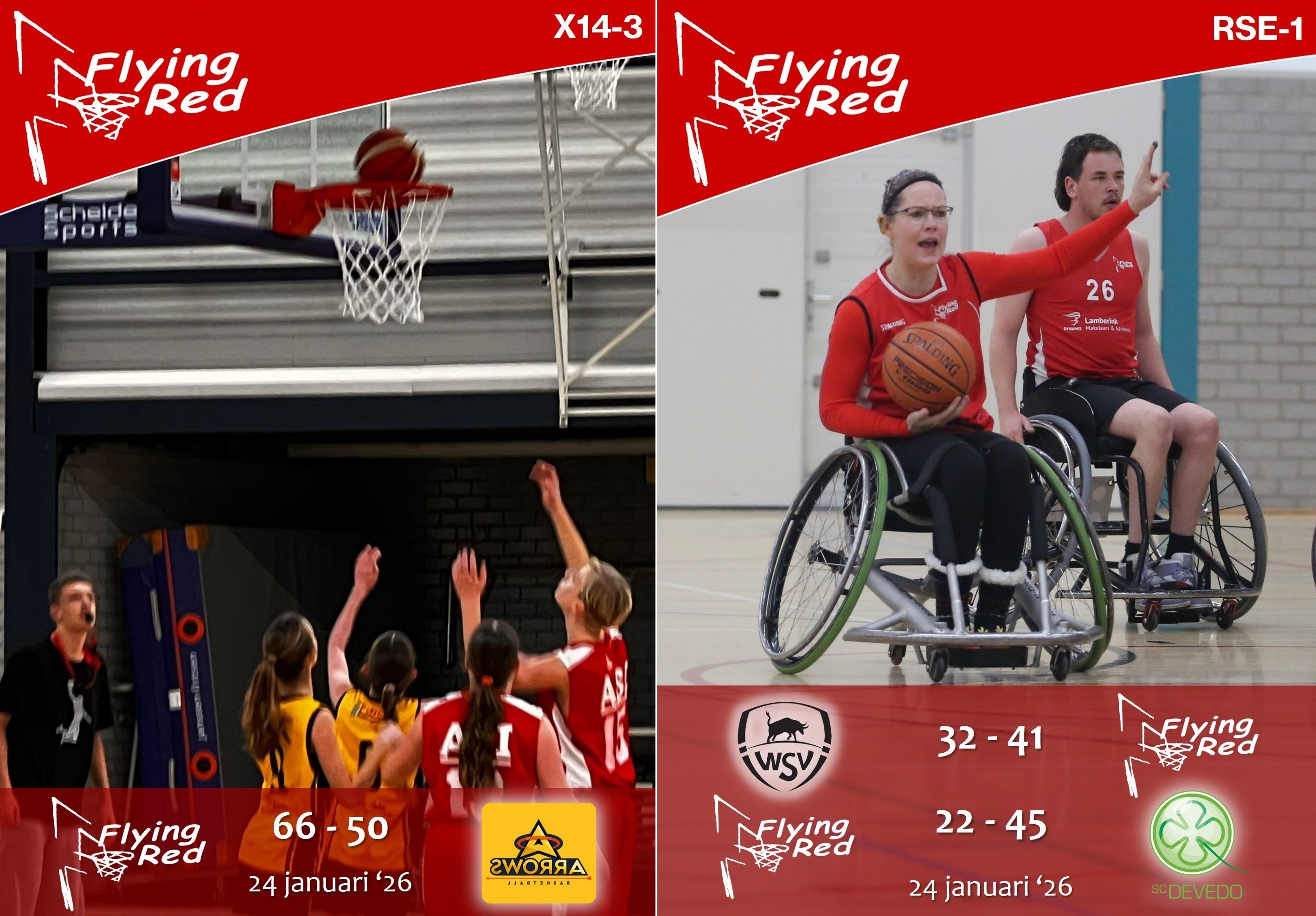 De wheelers speelden zaterdag in Ermelo. In deze competitie spelen de teams op één dag twee wedstrijden. De eerste wedstrijd was tegen WSV uit Apeldoorn. Flying Red opende de score en heeft de voorsprong niet weer weggegeven. Na het vierde kwart was de eindstand 32 – 41 in het voordeel van de Rodenaren. De tweede wedstrijd was tegen DeVeDo uit Ermelo. DeVeDo nam direct de voorsprong gaf die ook niet meer weg. Flying Red verloor deze wedstrijd met 22 - 45.