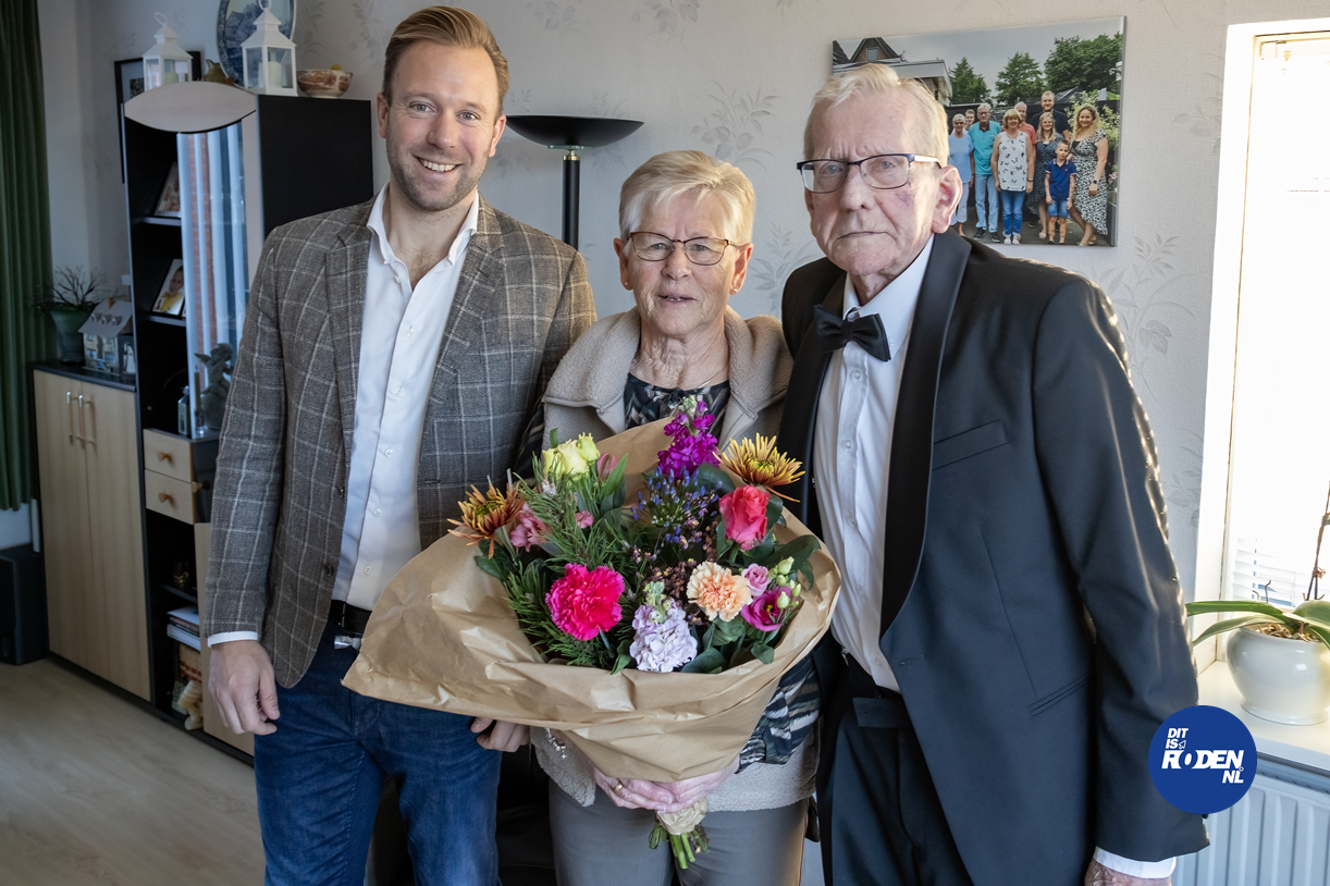Het is feest aan de Dorpshuisstraat in Norg, want het echtpaar Tienko en Renske Doorn viert vandaag hun 60-jarig huwelijk. Een bijzondere mijlpaal die niet onopgemerkt voorbijging. Wethouder Jos Darwinkel bracht het jubilerende paar een bezoek en overhandigde namens de gemeente Noordenveld een prachtig boeket bloemen.