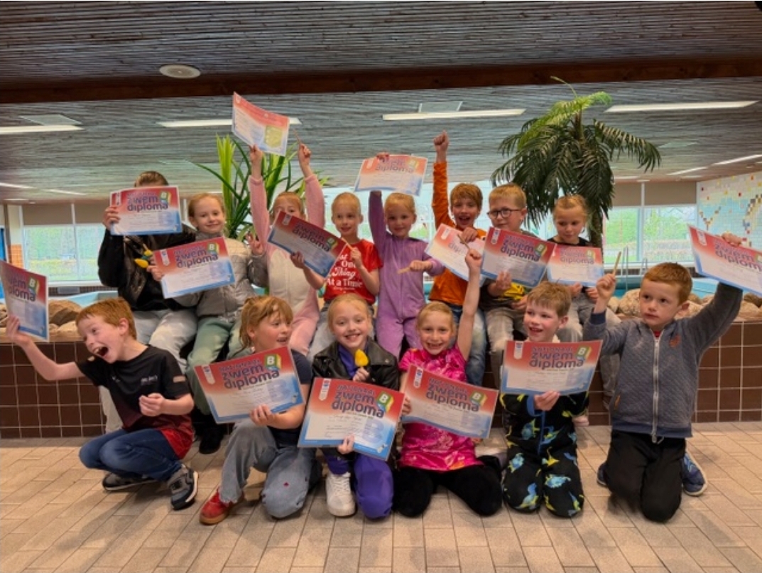 Afgelopen zaterdag 18 april hebben onderstaande kinderen laten zien dat ze de vereiste vaardigheden beheersen om een officieel zwemdiploma van de Nationale Raad Zwemveiligheid te mogen ontvangen.