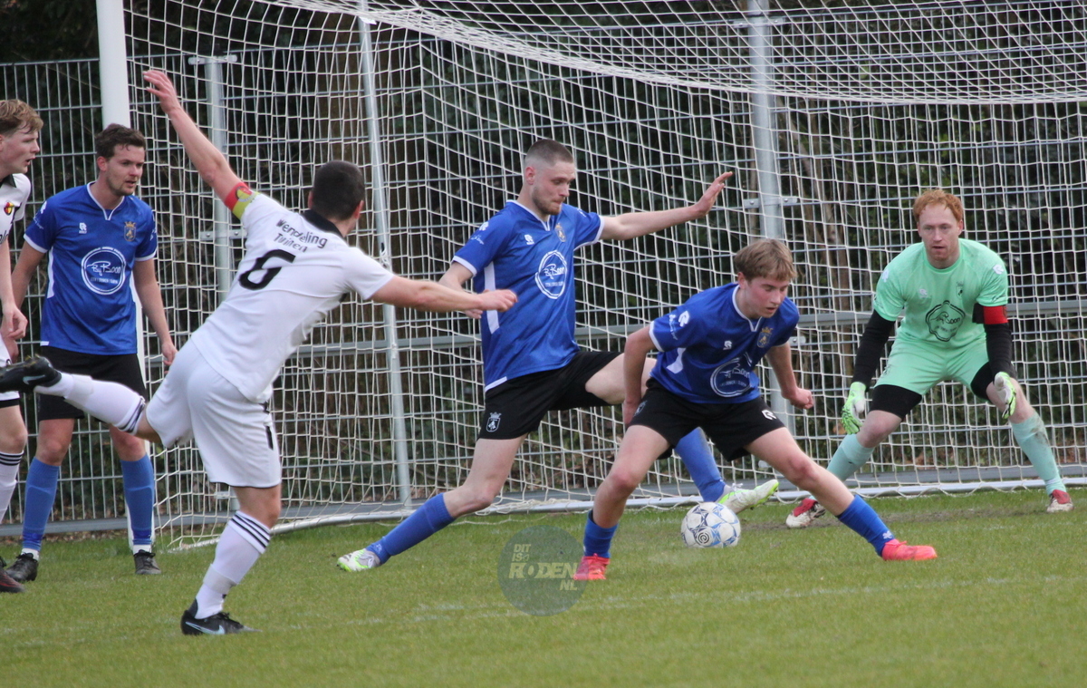Rolder Boys zocht het vooral in afstandsschoten. Maar daar stond Lennart Wekema. Alert, scherp, gesteund door een verdediging die standhield. Tot dat ene moment. Een hoge bal vanaf rechts, bedoeld of niet, eindigde via de binnenkant van de tweede paal in het doel. Een vreemde baan, een ongelukkig moment. Maar wel 0-1.