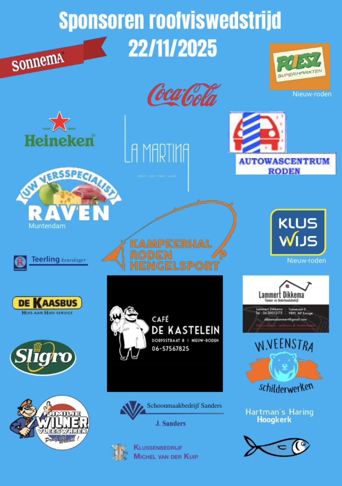 Bij Café De Kastelein in Nieuw-Roden stond zaterdag alles in het teken van spanning, gezelligheid en… vooral heel veel vis. Er werd al vroeg om 7 uur in de ochtend vertrokken vanaf Kampeerhal Roden. Onder de bezielende leiding van Sieb Veninga en Willie Luders trokken maar liefst 75 fanatieke sportvissers de waterkant op voor een geslaagde roofviswedstrijd. De sfeer was uitstekend, de verhalen nog beter en de vangsten indrukwekkend.