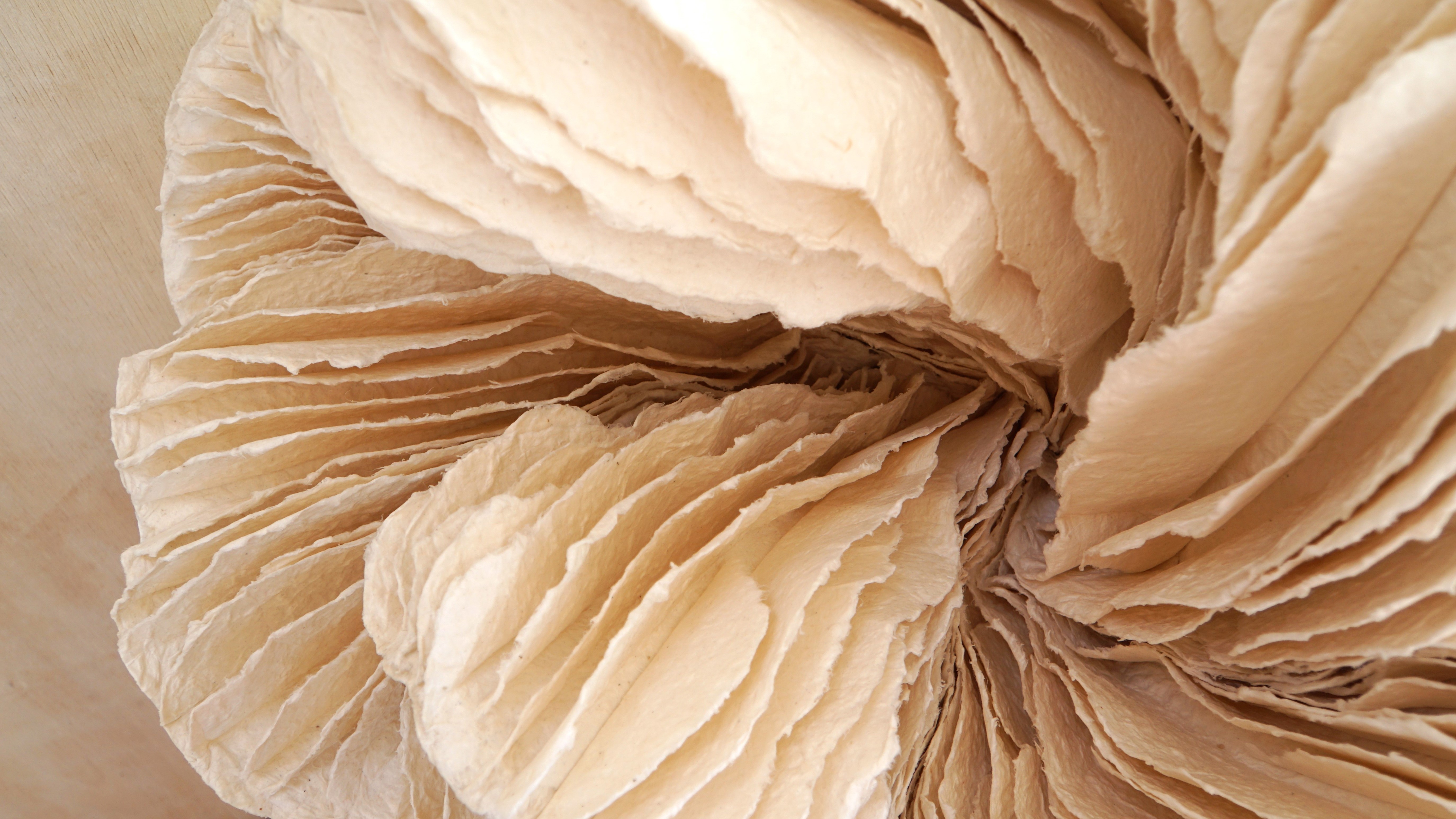 De natuur spiegelt voor haar het mens-zijn, want immers, wij zijn natuur. Haar objecten zijn gemaakt van handgeschept papier, de zwamvormen verwijzen naar nieuw leven dat ontstaat op dood materiaal.