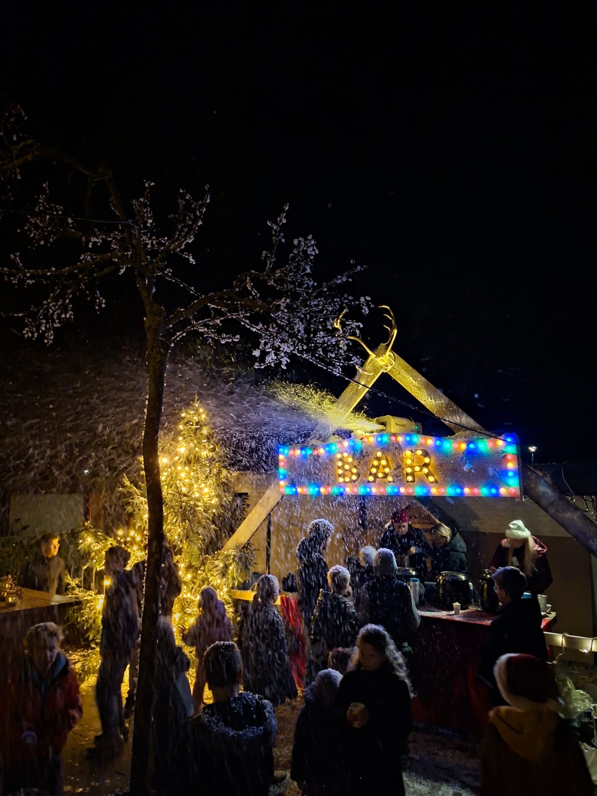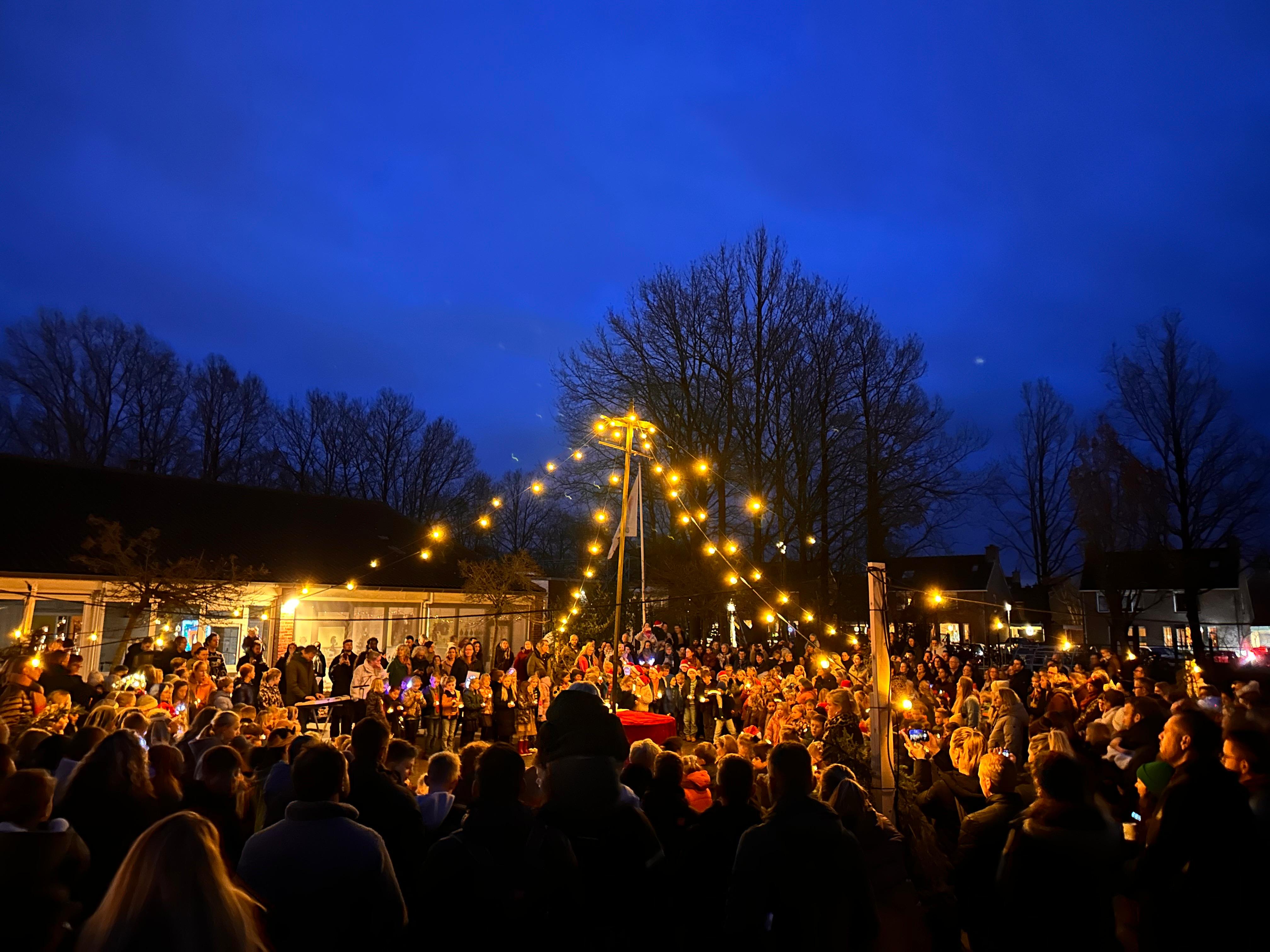De avond werd op het schoolplein afgesloten door samen na te praten en te genieten van een warm drankje. De opbrengsten daarvan zijn ook dit jaar weer voor het goede doel: de Voedselbank. En terwijl de warme chocolademelk werd uitgedeeld werd het als verrassing ook nog eens een echte witte kerst....