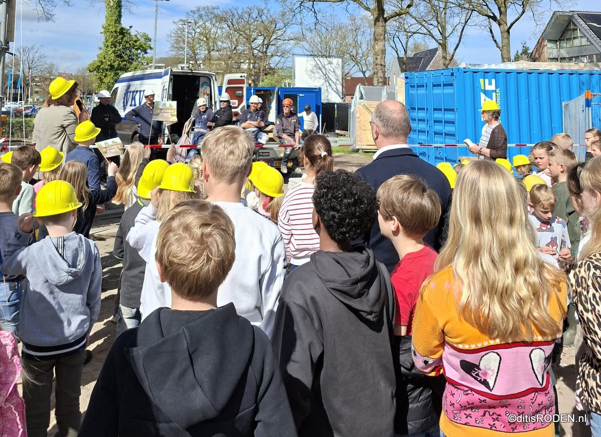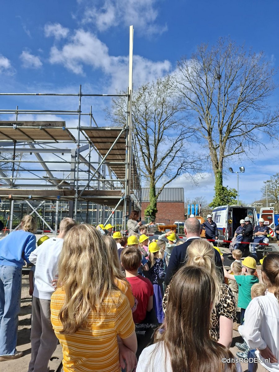 Donderdag 16 april vierde Kindcentrum De Rank aan de Floralaan in Roden een bijzonder moment: het bereiken van het hoogste punt van de nieuwbouw. Een belangrijke mijlpaal voor het kindcentrum, de bouwers én de leerlingen, die de afgelopen periode intensief hebben gewerkt aan het project ‘Bouw’ Leerlingenproject BOUW sluit feestelijk af
