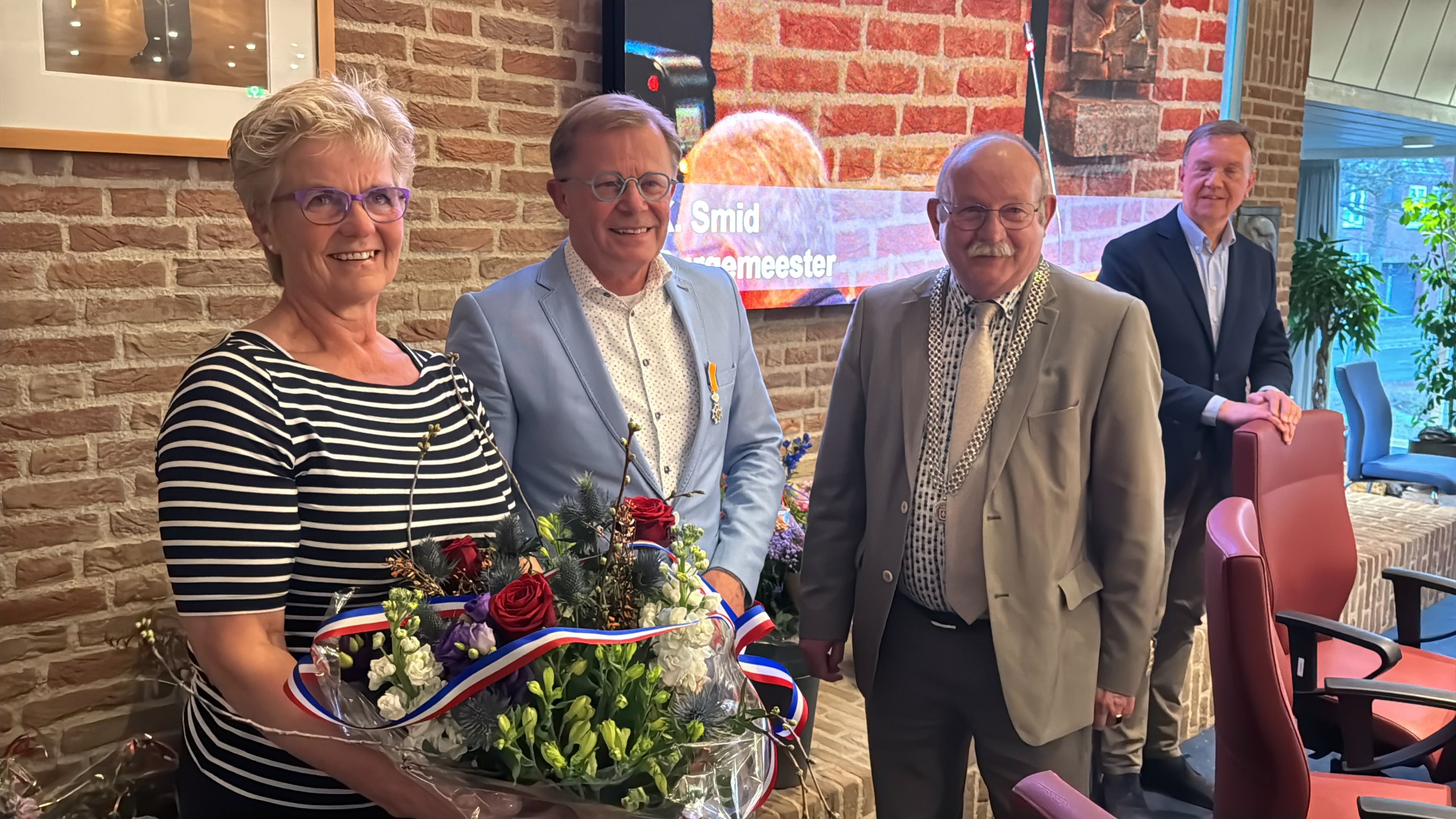 En dit was niet voor niets, want de burgemeester had de eer om te melden dat Zijne Majesteit Koning Willem-Alexander heeft behaagd om Jan ten Hoor te benoemen tot Lid in de Orde van Oranje-Nassau. Jan ten Hoor kreeg vervolgens van de burgemeester een koninklijke onderscheiding voor de inzet die hij de afgelopen drie raadsperiodes heeft getoond. Zijn familie, die ook aanwezig was, was ontzettend trots op deze onderscheiding en dat was ook te zien.