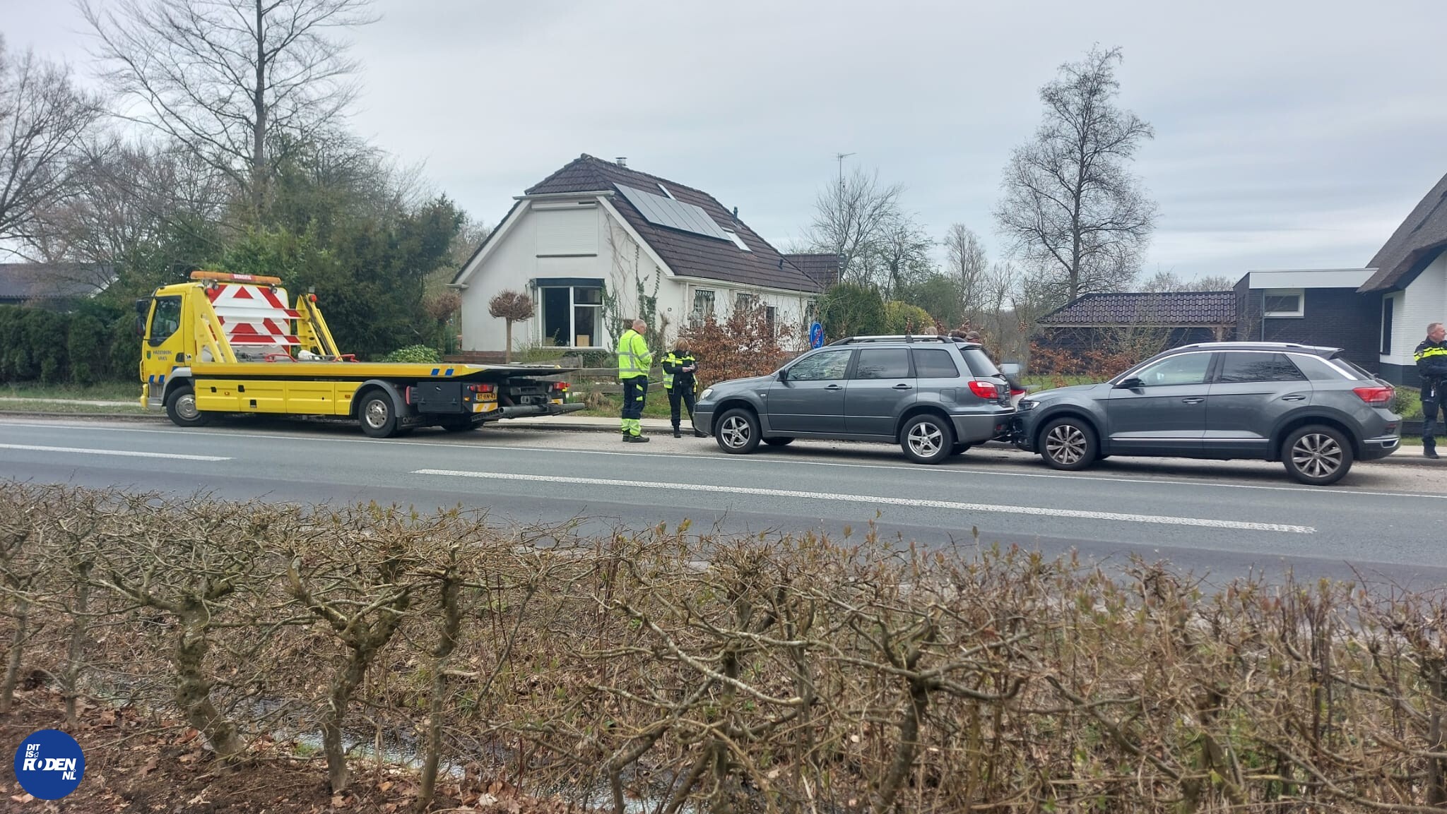 Op de weg botsten twee auto’s op elkaar bij een kop-staartaanrijding. Ook een ambulance werd opgeroepen. Eén persoon is ter plekke in de ambulance nagekeken.