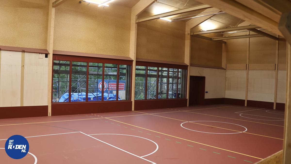 De vloer van de gymzaal ziet er gelikt uit, de lift is reeds geplaatst en aan de rest van de bouwwerkzaamheden wordt door bouwbedrijf Dijkstra Draisma hard gewerkt.