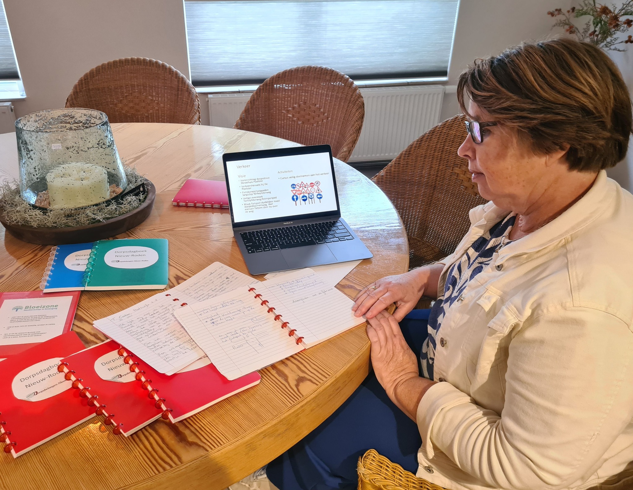 In totaal waren dertien dorpsdagboeken in omloop, vertelt Reina Bouma van Dorpsbelangen Nieuw-Roden. “We kregen uiteindelijk 121 reacties binnen. Dat is een prachtig resultaat. Het geeft ons een goed beeld van wat inwoners belangrijk vinden.” Het ontcijferen van al die handschriften was soms even puzzelen, maar alle ideeën zijn inmiddels uitgewerkt, geordend en samengevat in overzichtelijke tabellen.