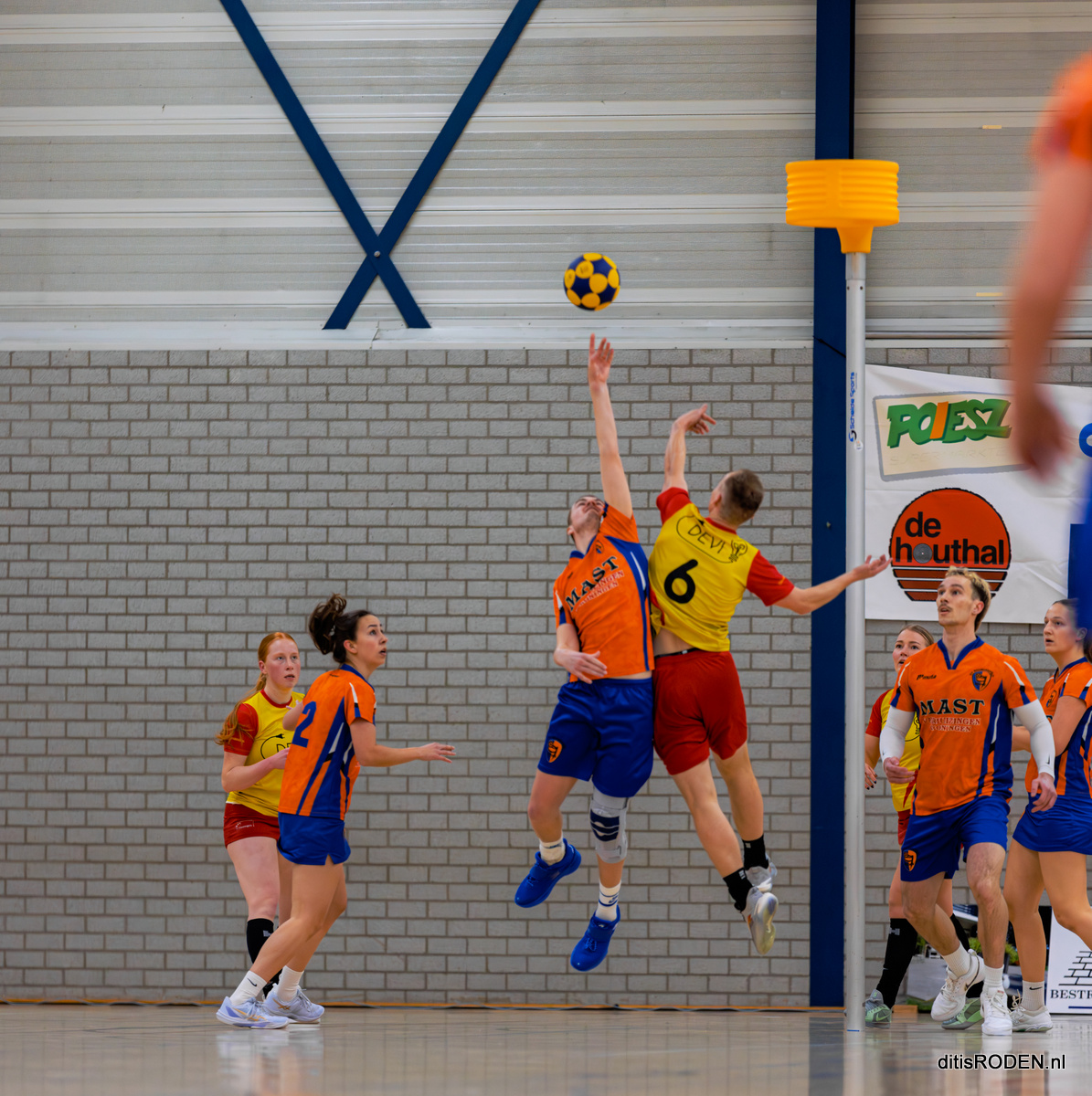 Zaterdag 17 januari stond voor kv Noordenveld de eerste wedstrijd van 2026 op het programma. Een week eerder bleef Sporthal De Hullen nog gesloten vanwege sneeuwval, waardoor de ploeg van Van Haastrecht een extra lange winterstop kende. Aanvankelijk zou Noordenveld thuis aantreden tegen ZKC’19 1. Deze wedstrijd wordt op 21 februari ingehaald. Nu was Flamingo’s uit Buitenpost de eerste tegenstander van 2026. Noordenveld won het eerdere duel met ruime cijfers (17-25), maar Flamingo’s had vorige week al weer wedstrijdritme opgedaan en beloofde een lastige tegenstander te worden.