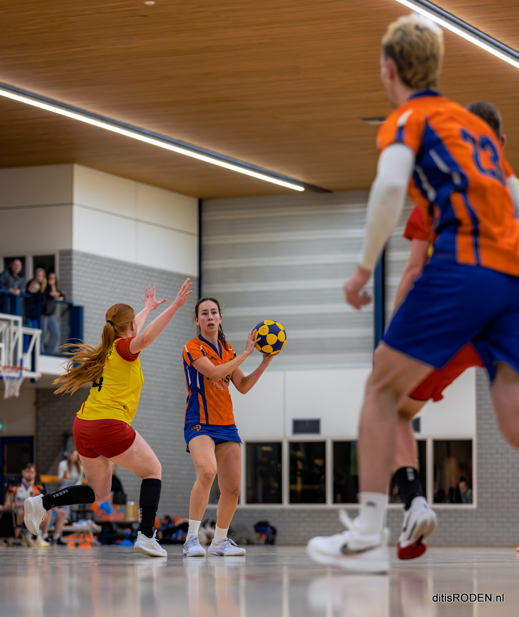 Na rust nam Flamingo’s het initiatief en liep het verschil op naar 10-13. Noordenveld herpakte zich en wist de stand weer gelijk te trekken tot 14-14. Wat volgde was een slordige fase voor de thuisploeg. Tien minuten lang bleef Noordenveld zonder score, terwijl Flamingo’s in diezelfde periode vier keer wist te scoren. Met nog acht minuten te spelen keek de ploeg uit Roden tegen een 14-18 achterstand aan.