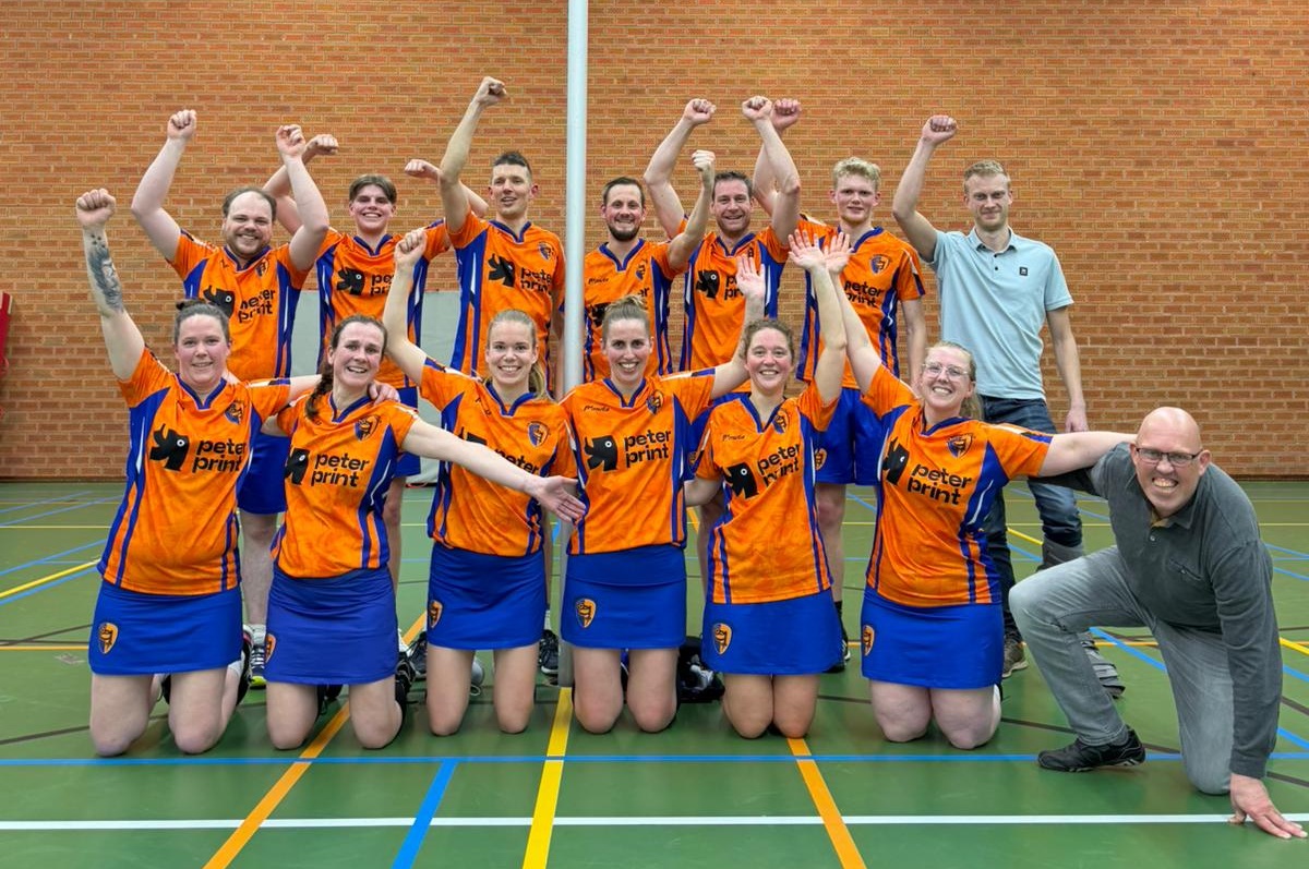 Midweek 2 van KV Noordenveld heeft het kampioenschap binnengehaald. In sporthal De Brinkhof in Norg, waar het team haar thuiswedstrijden speelt, werd met overtuigende cijfers gewonnen van LDODK: 25-9. Met deze ruime overwinning stelde het team het