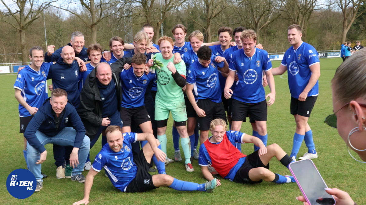 Toen de 90 minuten speeltijd er al op zat, kreeg Joppe van Leeuwen de bal zodanig op de slof, dat hij het net deed bollen en een verblufte Oldeholtpadedoelman kansloos achter liet. De 2 - 1 einduitslag werd als een kampioenschap gevierd!!