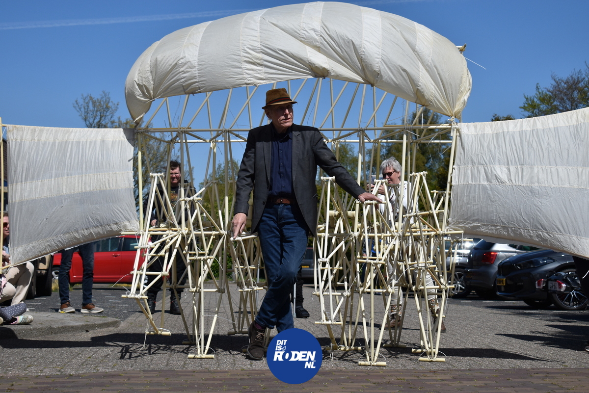 Burgemeester Klaas Smid staat erbij, ziet hoe Roden zich verzamelt rond iets wat geen machine meer is, maar ook nog geen dier. Iets daartussenin. Iets dat leeft op wind en verbeelding.