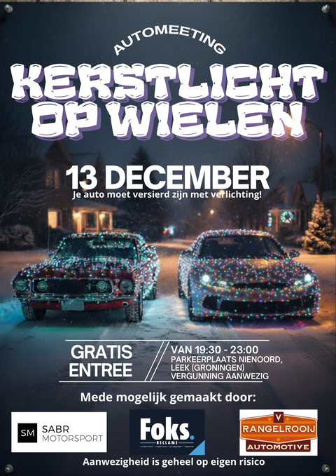 Op zaterdag 13 december 2025 verandert de parkeerplaats van Nienoord in Leek in een lichtgevende ontmoetingsplek voor autoliefhebbers. De groep CarCrewNoord organiseert daar Kerstlicht op Wielen, een bijzondere auto-meeting waarbij voertuigen feestelijk worden versierd met kerstverlichting.