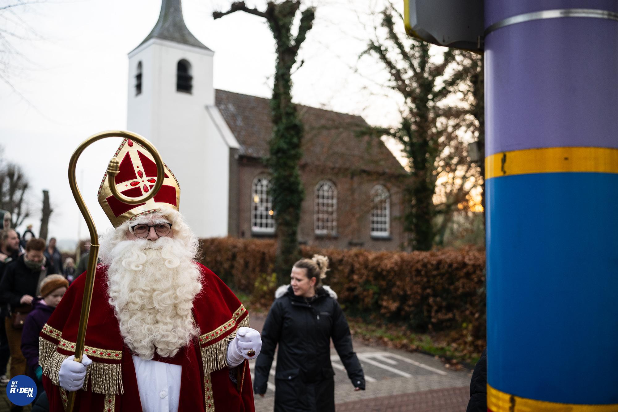 Sinterklaas kwam weer naar Roderwolde toe, met zijn mijter recht en zijn humeur heel goed.