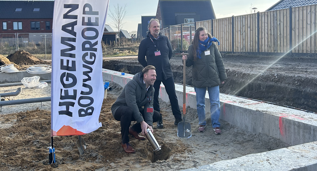 Op woensdag 18 februari vond het officiële startbouwmoment plaats van de start van de bouw van 8 twee-onder-één kapwoningen kapwoningen en 1 vrijstaande woning voor het project Groen Wonen in Norg. De ontwerpen van de woningen sluiten aan bij de eerder gebouwde woningen uit de eerste fase, zodat hierdoor een mooi samenhangend geheel ontstaat. Samen met de nieuwe bewoner is door wethouder Jos Darwinkel en algemeen directeur van Hegeman André la Rivière een tijdscapsule geplaatst.