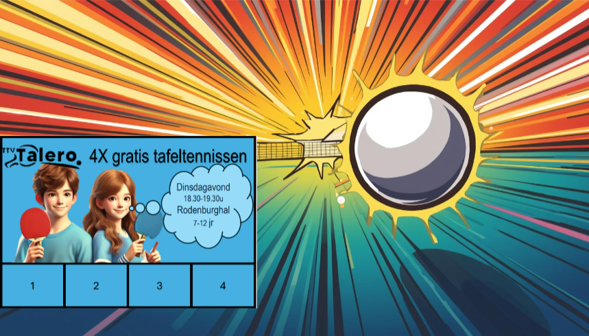 Met deze strippenkaart kan jeugd tussen de 7 en 12 jaar op dinsdagavonden vier keer gratis tafeltennissen in de Rodenburghal in Leek. De strippenkaarten zijn in beperkte aantallen beschikbaar bij de meeste basisscholen in Leek, Tolbert en omgeving. U kunt ook voor uw kind een kaart aanvragen via de website talero.nl door contact op te nemen met trainer Frank Stolp of jeugdcoördinator Marcel Rikhof. Een kaart aanvragen in de zaal kan ook, maar er is beperkte plek en kinderen die vooraf een kaart hebben aangevraagd hebben voorrang. In de meivakantie is geen training.