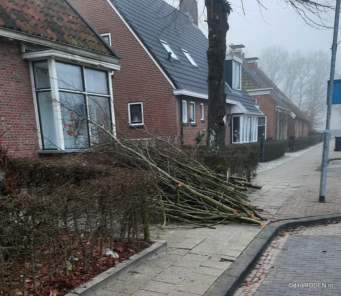 Zo heeft de buurt er in ieder geval geen last meer van. En als de gemeente maandagochtend begint met werken, zien ze meteen waar de takken liggen.