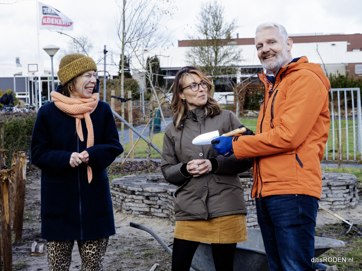 Met een grauwe winterlucht boven het land en kleurcodes op de weerapps, werd deze week toch volop buiten gewerkt bij Terra Oldekerk. Leerlingen legden, onder andere samen met wethouder Bé Schollema, de basis voor een bijzondere tuin: De symfonie