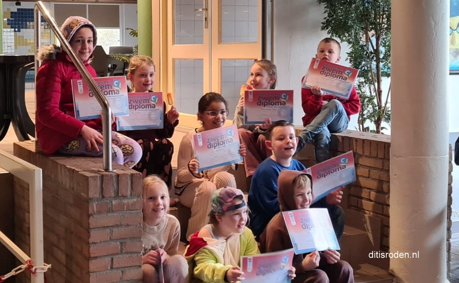 Onlangs werd er weer diploma gezwommen in Sportcentrum de Hullen in Roden.