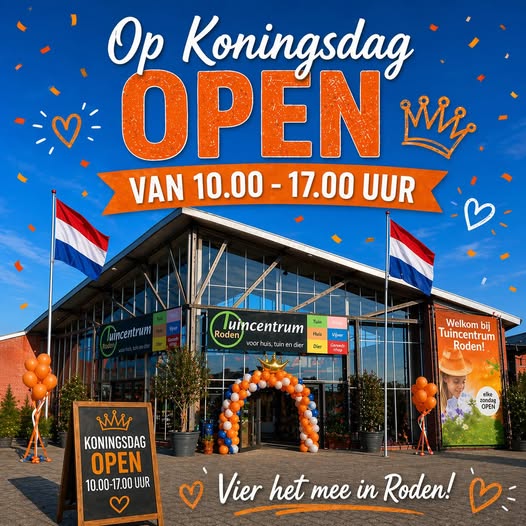 Tuincentrum Roden met Koningsdag gewoon open!