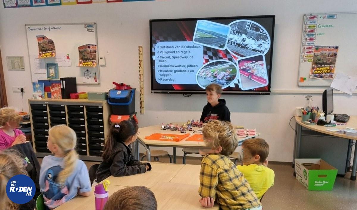 NIEUW-RODEN – Maandagochtend was het allesbehalve een gewone schooldag op OBS De Poolster. Leerling Quinten Willems gaf een indrukwekkende spreekbeurt over zijn favoriete sport: stockcar racing. En dat deed hij niet zomaar uit een boekje – hij liet het racemonster tot leven komen, letterlijk!