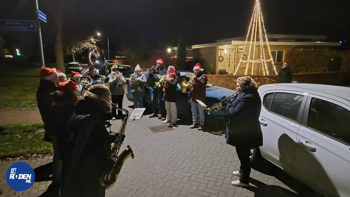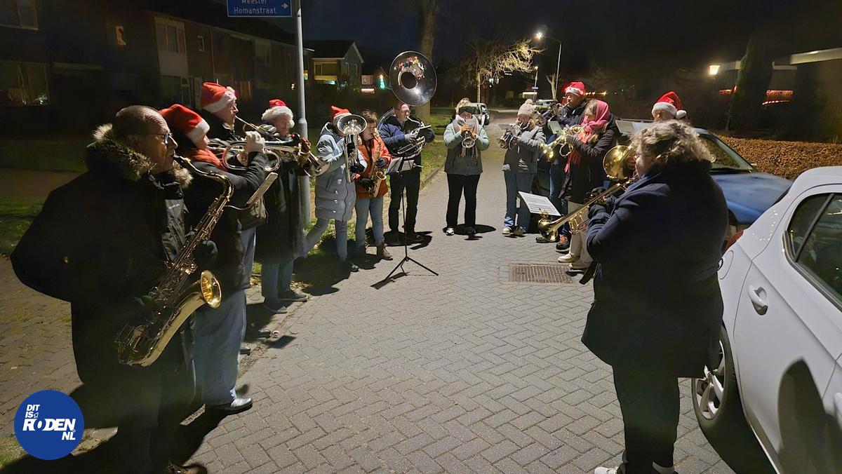 In twee groepen startten de muzikanten om half zeven: één groep vanaf de Brink in Roden en één groep in Roderwolde. Met warme jassen aan en instrumenten in de hand reden zij langs verschillende plekken, waar bewoners verrast werden door bekende en sfeervolle kerstklanken. Ondanks de kou was het een mooi moment om even naar buiten te gaan en te luisteren.