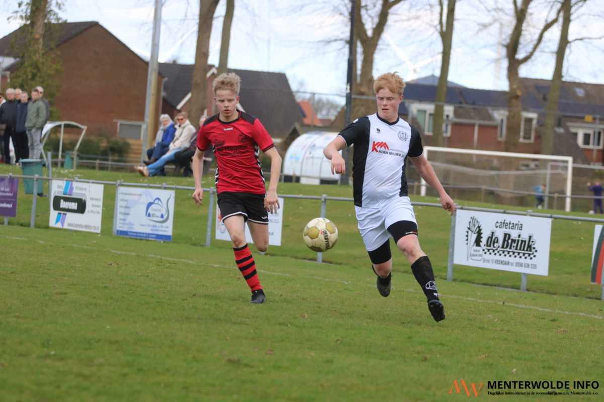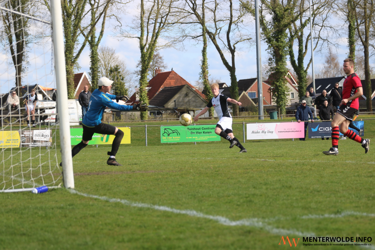 Vlak voor rust kwam die hoop weer tot leven. Tim Wekema, samen met Deon Hazeloop een voortdurende dreiging voor de defensie van Muntendam, zorgde in blessuretijd voor de aansluitingstreffer: 3-2. Direct na rust trok diezelfde Wekema de stand zelfs gelijk: 3-3.
